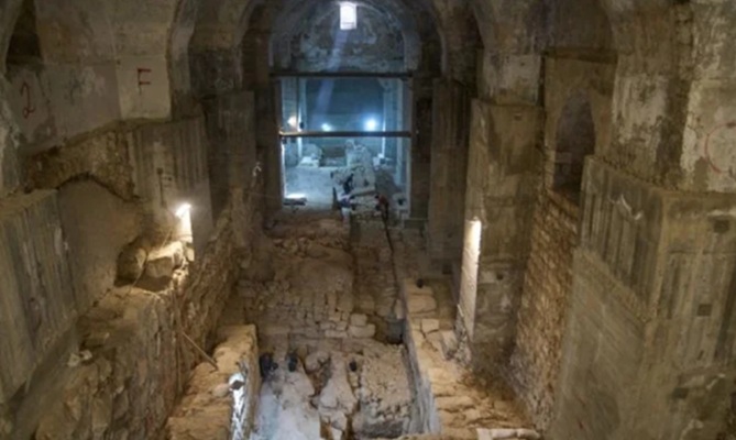 Durante los últimos dos años, los arqueólogos retiraron manualmente de la sala el equivalente a dos piscinas olímpicas de tierra y escombros. Las excavaciones revelaron lo que creen que son fosas de tinte de la Edad Media, probablemente para teñir telas, y la sección larga de los cimientos del muro asmoneo.