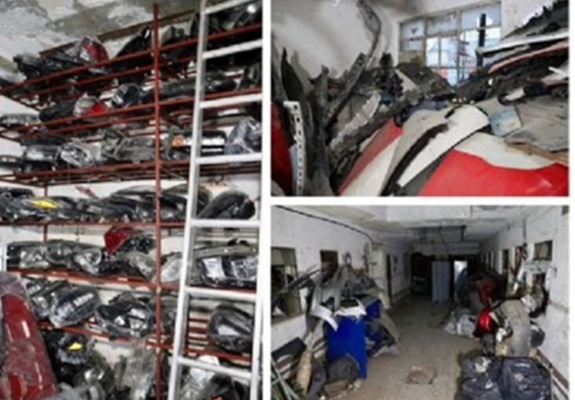 Durante el cateo fueron aseguradas al menos siete placas de circulación, así como puertas, faros, parabrisas, calaveras, vidrios, cofres, rines, llantas, medallones, facias, salpicaderas, puertas de cajuela y vehículos desmantelados de distintos modelos y marcas. El conjunto de lo decomisado suma alrededor de 150 toneladas.