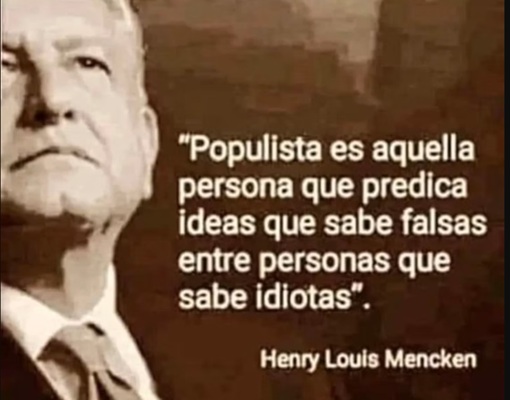 Repite las mismas frases bonitas pero trilladas y falsas del mayor farsante de los expresidentes, Andrés Manuel López Obrador: “amor y paz”; “por el bien de todos, primero los pobres”; “no puede haber gobierno rico con pueblo pobre”; “con la Cuarta Transformación, se acabaron los privilegios y la corrupción” y así, de mentira en mentira, con una retahíla de frases huecas, imagina que al igual que el repudiable tabasqueño, hipnotiza a tontos e ignorantes mexicanos que viendo la podredumbre, voracidad, cinismo e hipocresía de estos desastrosos gobiernos y su nulo crecimiento, siguen aplaudiendo y creyendo en ellos, para daño y desgracia de todos.