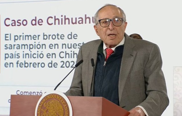 Durante la conferencia matutina, el funcionario federal alertó que el sarampión es altamente contagioso, capaz de infectar hasta 18 personas por cada caso y permanecer activo en el ambiente hasta por dos horas.