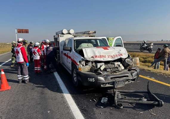 También un camión de rescate de la Cruz Roja, impactó por detrás a una ambulancia los Servicios de Urgencia del Estado de México.