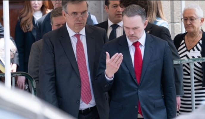 El funcionario estadunidense llegó minutos antes de las 10 de la mañana por la calle Corregidora, para sostener este encuentro.