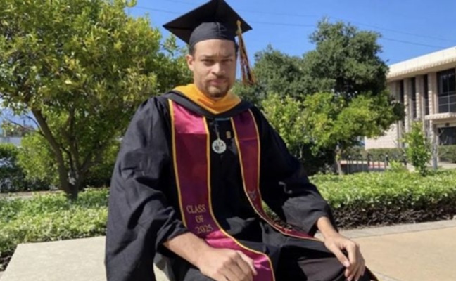 La imagen, publicada en el sitio de redes profesionales LinkedIn, lo muestra con toga y birrete tras graduarse con una maestría en ciencias de la computación en la Universidad Estatal de California-Dominguez Hills.