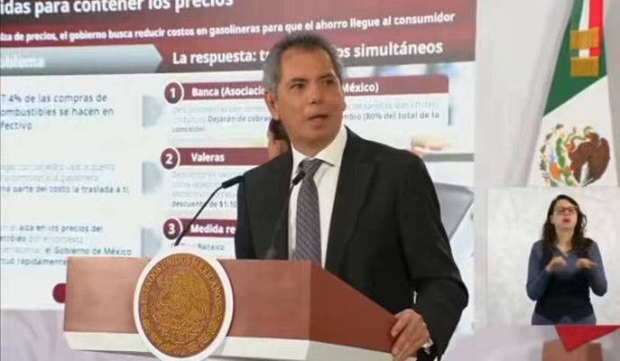 El secretario de Hacienda Edgar Amador señaló que el acuerdo para bajar las comisiones a gasolineras con pagos digitales a 0%, implica reducciones promedio de 2.57 pesos por transacción con débito y 7.45 pesos con crédito, además de 1.10 pesos en vales de red cerrada.